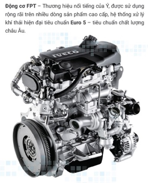 Động cơ FPT (Fiat Powertrain) mạnh mẽ, tiết kiệm nhiên liệu, thân thiện môi trường.