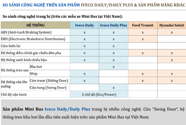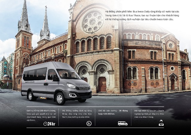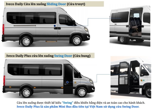 Xe Mini Bus thương hiệu Iveco, gồm 2 phiên bản Bus Iveco Daily 16 chỗ và Bus Iveco Daily Plus 19 chỗ, hướng đến phát triển thêm phiên bản Premium 10 chỗ và 12 chỗ.