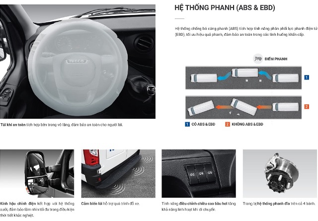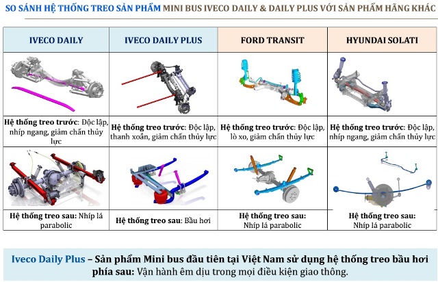 • Hệ thống treo bầu hơi (Iveco Daily Plus) tạo cảm giác êm dịu trong hành trình.