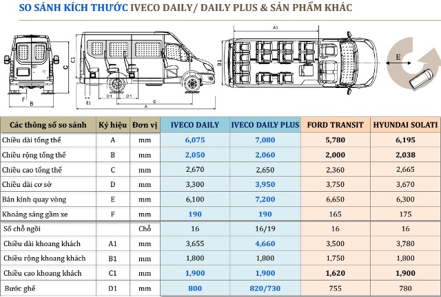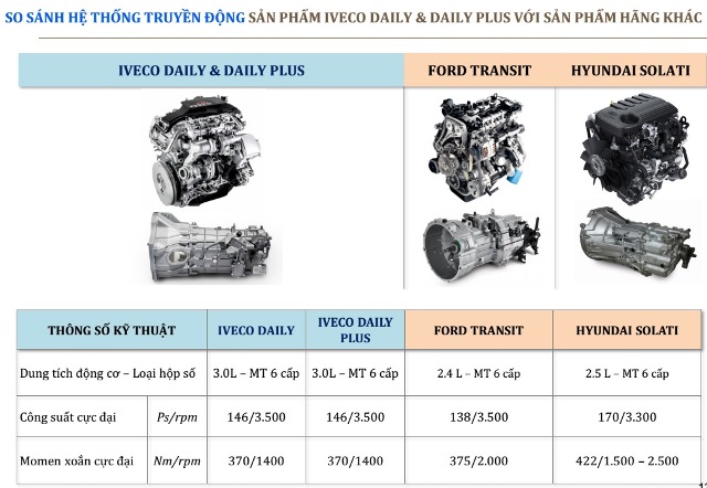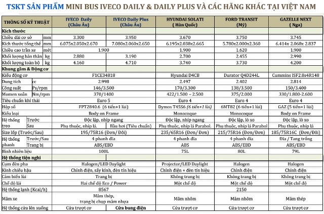 So sánh Ô tô 16 chỗ - Iveco Daily - Ford Transit - Hyundai Solati