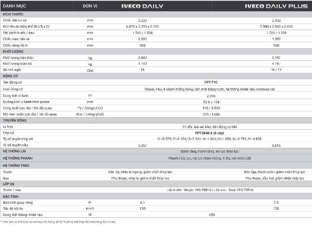 Iveco Daily (16 Chỗ) | 929.000.000đ |