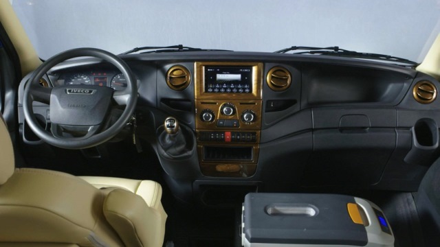 Kính cửa cabin Ô tô 16 chỗ iveco daily điều khiển điện. Công tắc điều chỉnh góc chiếu đèn pha. Đồng hồ táp lô tích hợp màn hình hiển thị thông tin điện tử 3.5”. Cổng USB, Chìa khóa, khóa cửa trung tâm điều khiển từ xa. Công tắc điện điều khiển nâng hạ chiều cao bầu hơi. Vô-lăng gật gù điều chỉnh 4 hướng, tích hợp túi khí (Airbag) . Ghế tài điều chỉnh 4 hướng.